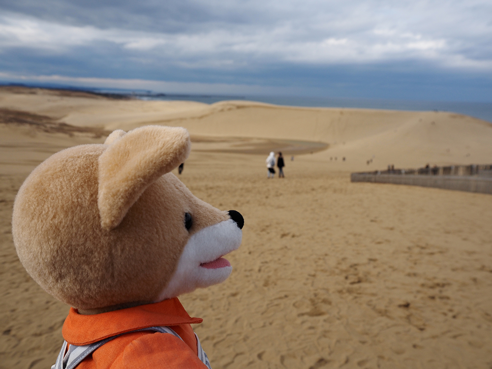 この日は風が強く、砂の山から見渡す日本海は荒れ模様。海に向かって「こ───ん!」と叫ぶ、あきの姿を思い出しました。