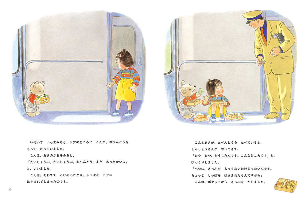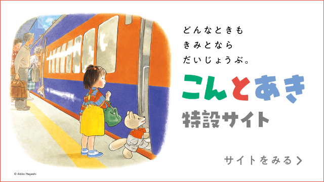『こんとあき』は、「あき」という名前の女の子が、キツネのぬいぐるみ “こん” と一緒に、おばあちゃんの住む「さきゅうまち」を目指す冒険物語。刊行以来、たくさんの子どもたちに愛されてきた作品です。