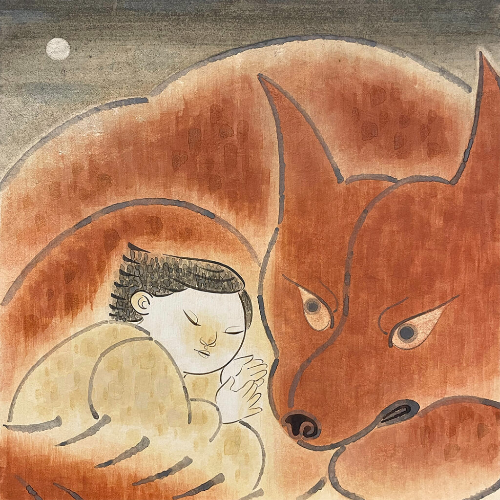 大学を出た後も、よく市民図書館の絵本コーナーに通いました。そんななかで手に取ったのが『きつねにょうぼう』(福音館書店)です。人間の女に化けたきつねと、農民の男が夫婦となり子どもをもうけ、幸せに生活するも、やがて悲しい別れが訪れるという物語です。片山健さんの叙情豊かな油彩で日本の田園風景が描かれています。特に驚いたのは登場人物の表情です。大胆な筆致で描かれているというのに、なんとも複雑な機微が見て取れるのです。にょうぼうの正体が露わになった後の夫婦の微妙な距離感まで想像できてしまいます。そして長谷川摂子さんの、歌うような、懐かしい響きの文章と見事に調和していて、声に出して読んでいると思わず込み上げてくるものがありました。事あるごとに読み返す素晴らしい絵本です。