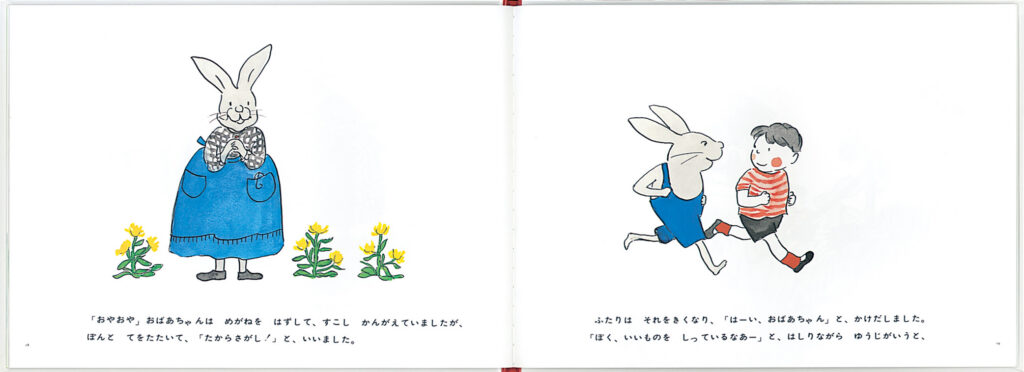 こちらが、原作の絵本『たからさがし』。スタッフの方のお話によると、この絵本も『ぐりとぐら』や『そらいろのたね』とともに、スタジオジブリの宮﨑駿監督が大好きな作品なのだそうです。