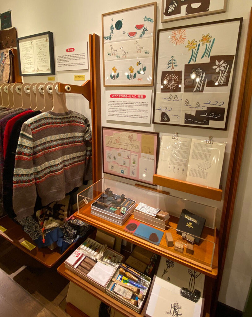 手作りのものだけでも、編み物、刺繍、パッチワーク、あてこすり染め(ステンシル)、はんこ作り、版画、切り絵……。となりで見ていたカップルの若い男性が、「なんでもするんだなあ!」とびっくりしていました。