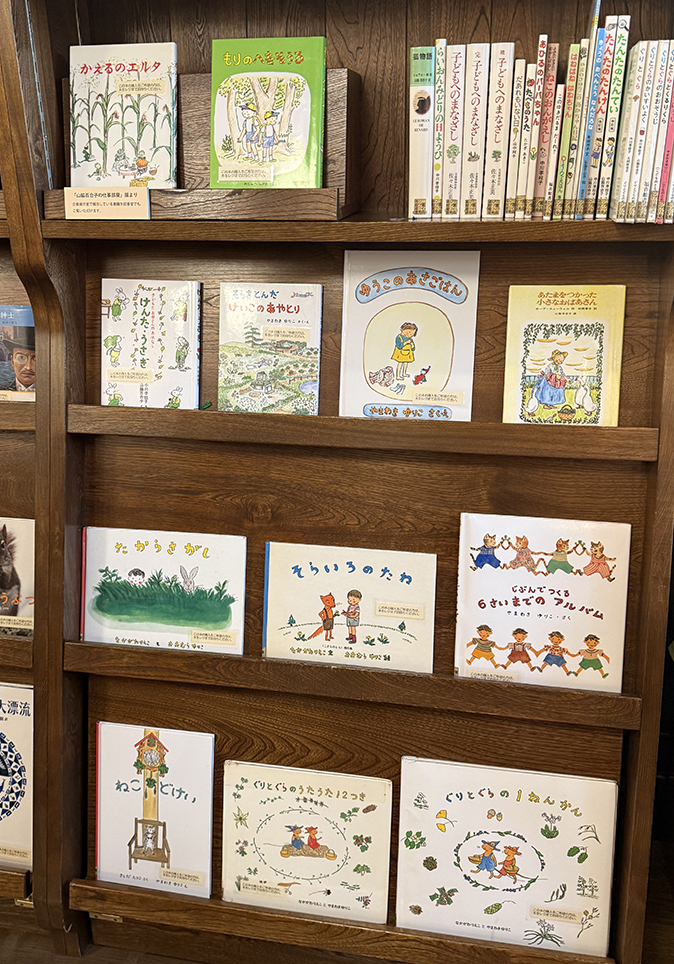 山脇さんの作品もたくさんあり、「なつかしい!」と言って手に取っている方が多くいらっしゃいました。2階のギャラリーでも山脇さんの絵本や読み物を手に取って見られるのですが、トライホークスでは気に入った本を買って帰ることもできるんです。この場所で、一生ものの本との出会いが待っているかもしれません。
