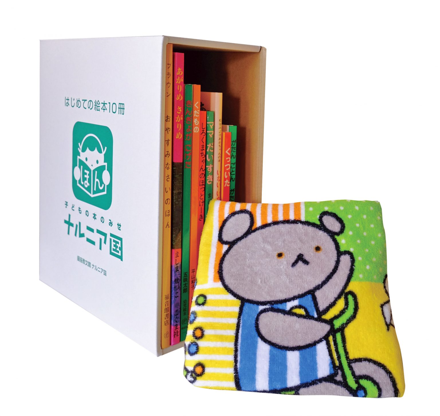 ナルニア国の選書による赤ちゃん絵本のセット。以前、赤ちゃん絵本のフェアを行うため、ナルニア国でよく売れているものを調べたところ、上位は『きんぎょが にげた』(福音館書店)や『しろくまちゃんの ほっとけーき』(こぐま社)をはじめ、ロングセラーの絵本ばかり。いかにもナルニア国らしいラインナップだったため、セットにしてお届けしようということになったそうです。贈り物にいかがですか。