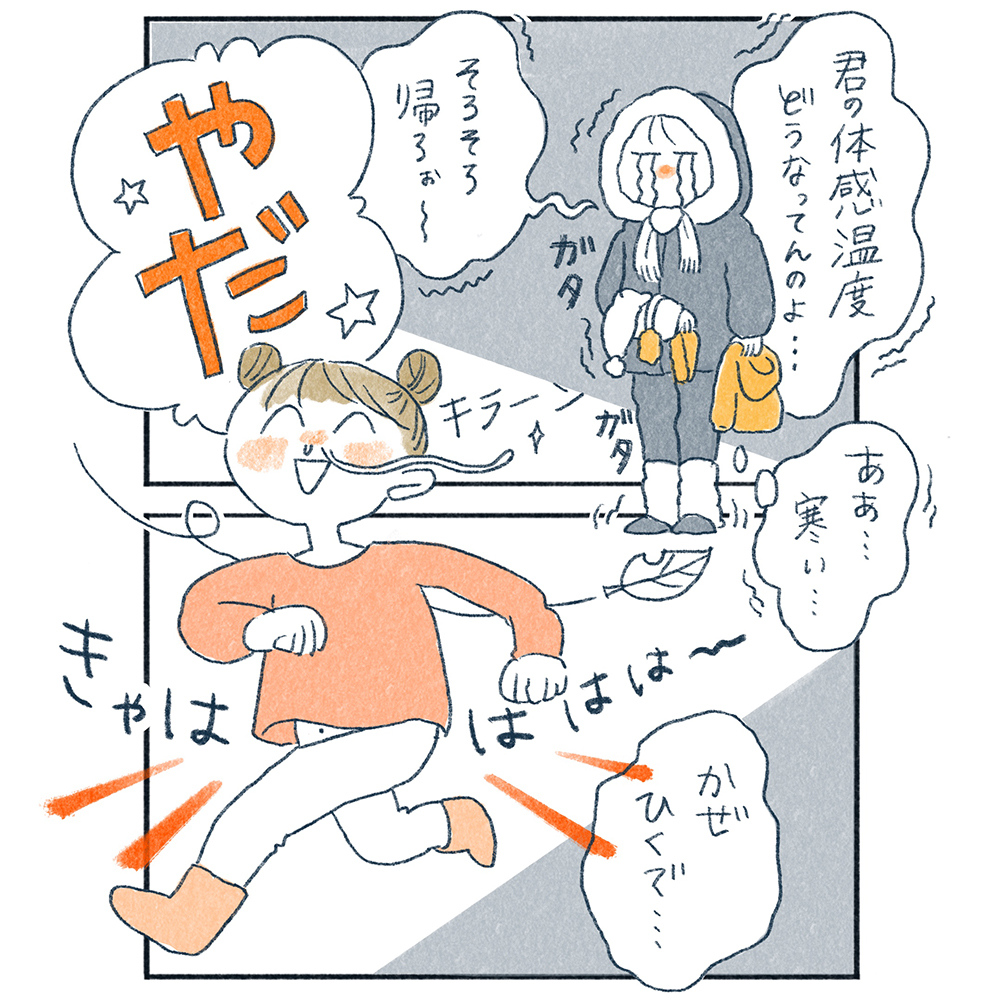 母は着込んでも着込んでも寒いのに子どもってすぐに脱ぎたがる!