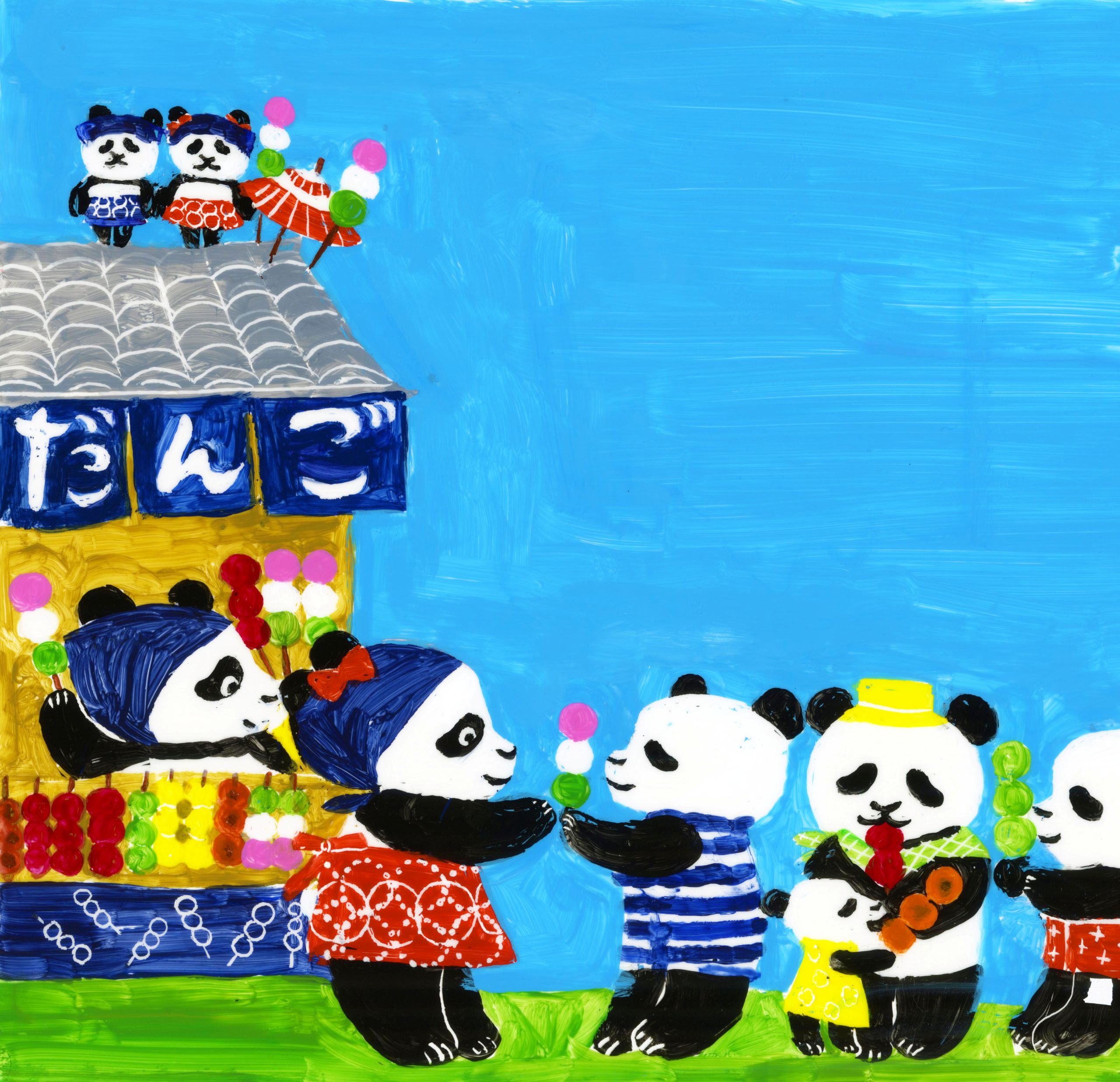 パンダのきょうだい、とんとんくんとらんらんちゃんはおだんごやさんです。おだんごはみたらし、あんこ、きなこ、それからピンクとしろとみどりのさんしょくだんごと、パンダのだいすきなささのはっぱのささだんごがあって、どれもだいにんきです。