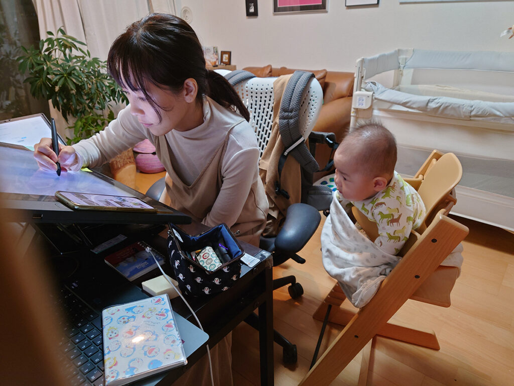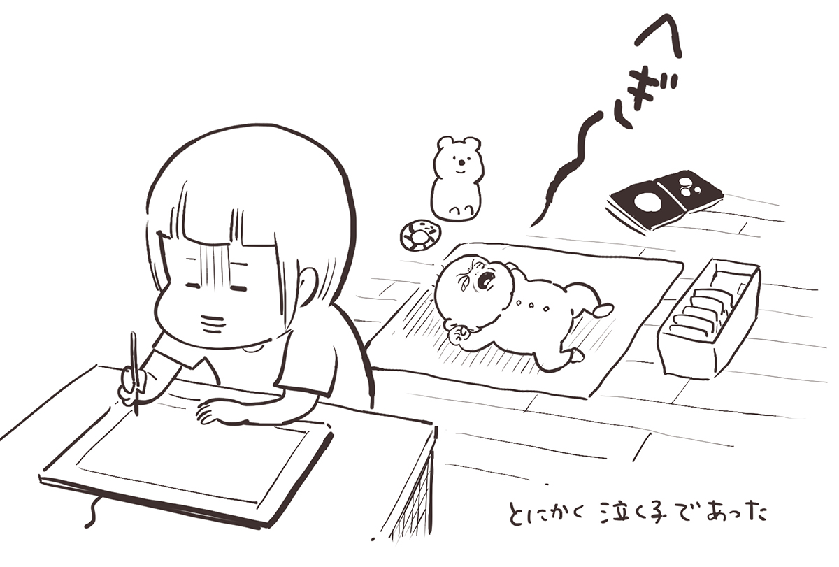 出産直後は「すぐ復帰するぞ!」と思っていたのですが、実際に育児が始まると「ああ、こんなに大変なんだ……」と愕然としました。出産後もあまり間を空けずに漫画を描いていらっしゃる方がいるので、できるかなと思っていましたが、あれはすごいことなんですね。普通の人には、なかなかできないということがわかりました。仕事に集中していても、赤ちゃんが急に泣くと作業が中断されて、「あれ? 今まで何してたっけ?」となるんです。