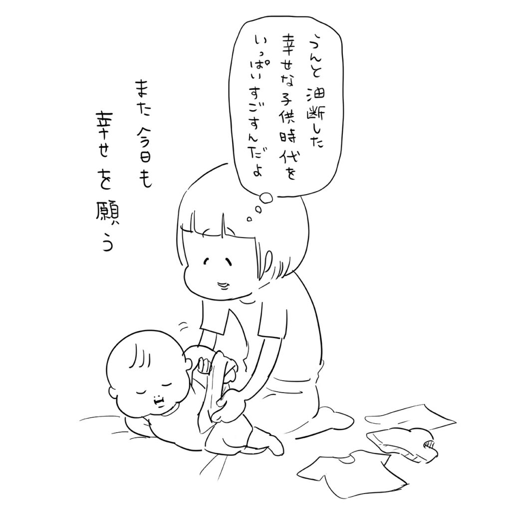そうなんです。夜間授乳で眠れなかったときには、自分が20年後からタイムスリップしてきた設定を思い描いて、息子に「ああ…小さいねぇ~」なんて言いながらやっていました(笑)。まだ小さい姿しか見たことないんですけどね。