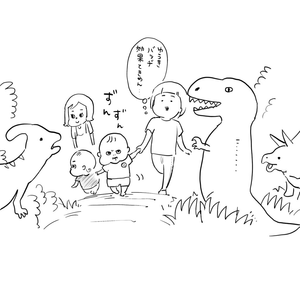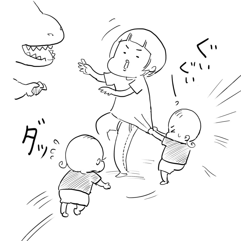 作品を描いていく上で大事にしているのは、感情から入る目線と、俯瞰の目線のバランスをとることです。普段は自然にやっているからあまり意識しないのですが、産後間もない頃の作品を見ると、やはり俯瞰の目が欠けているな……と感じます。できるだけ俯瞰して、「笑おう」という気持ちはあったと思いますが、すぐ絶望して「ドーン」と落ち込んでしまったり(笑)。今だったら「それ、おもしろいのに!」って思えるんですけどね。イヤイヤ期で子どもの感情が爆発したときでも、「おもしろくなってきたよ……」と逆に笑えるようにもなりました。
