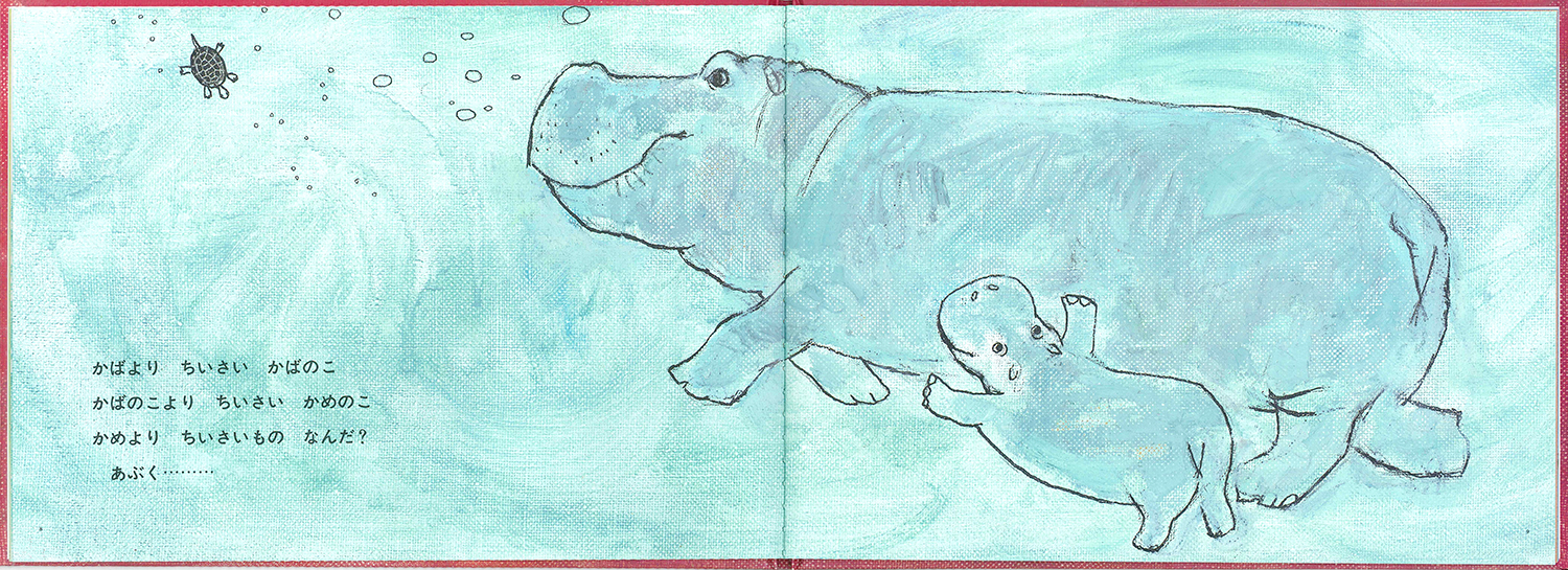 この訪問のときにポール・フォシェにお見せしたのが、『かばくん』だったんです。彼は山口智子さんがその場で訳されるお話を聞いて、「これは、俳句ですね」、そして絵を見ながら「これは浮世絵の線ですね」と言いました。確かに、ヨーロッパの絵描きさんは、こういう線はあまり描きません。ところが、ポール・フォシェは「これは俳句で、この絵は浮世絵だ」と話し、「日本人がこういう表現をするということは、とても興味がある」と言いました。