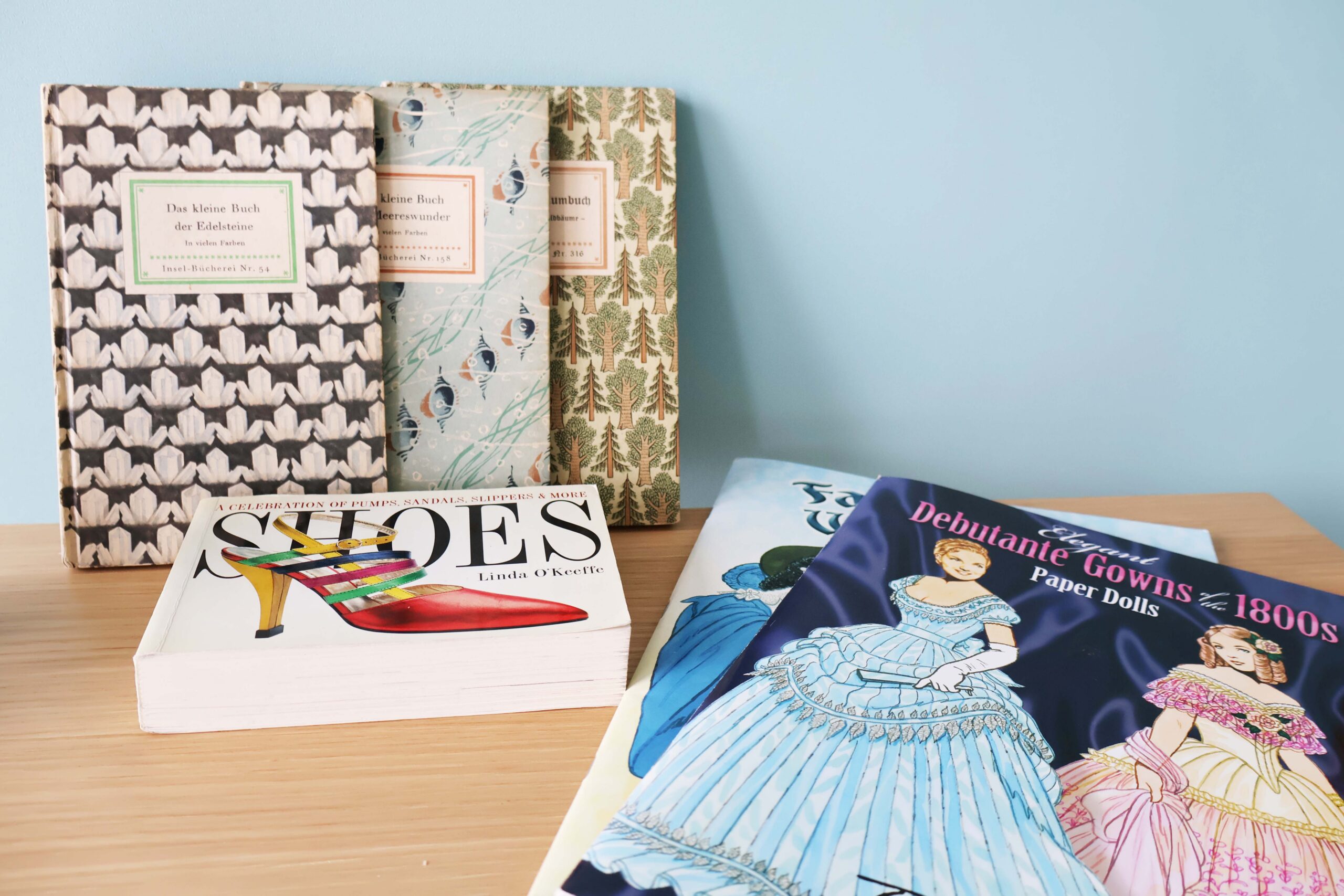 ドイツの「インゼル文庫」は、自然科学から人文科学まで、幅広い分野からさまざまなテーマをとりあげる掌サイズの図鑑シリーズ。樹木、鉱物、昆虫、きのこなどを扱った数冊を、雑貨屋さんで入手しました。表紙はデザイン的ですが、ページを開くと、見開きを贅沢に使って、美しい絵がずらり。巻末には解説もついています。1912年から近年に至るまで、戦禍や東西分断を乗り越えて刊行を継続、1500以上のラインナップがあるそうです。いつかシリーズをまとめて閲覧してみたいものです。