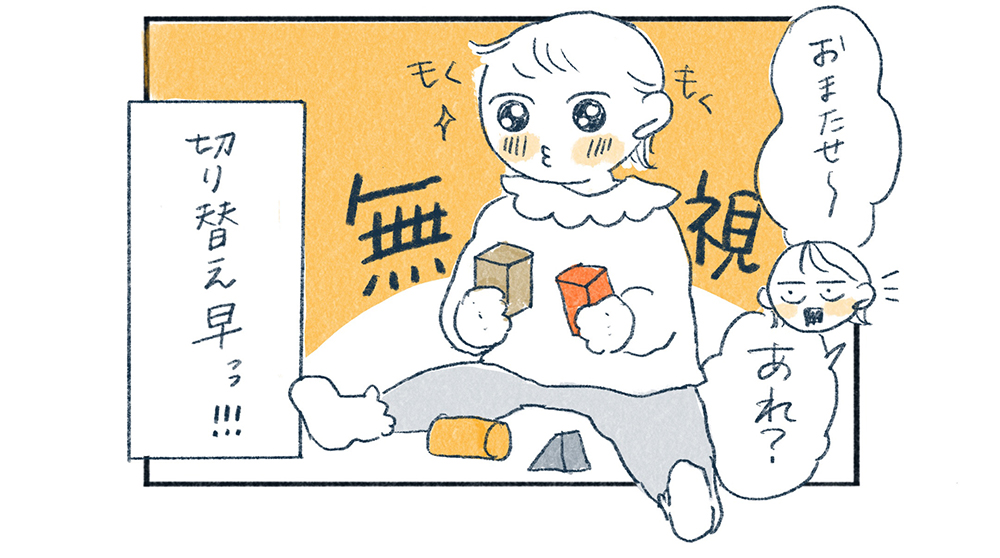 預けるときには大泣きだった娘は、迎えに行く頃にはケロッとしておもちゃに夢中。