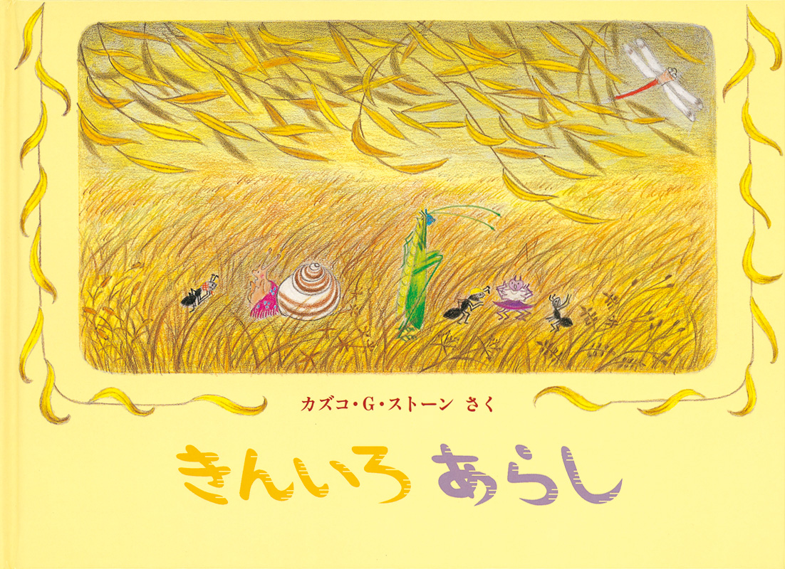 大きな柳の下にある「やなぎむら」の住人は、ばったのトビハネさんと、かたつむりのキララさんと、くものセカセカさんと、ありのセッセ家族。秋のある日、あかとんぼが「きんいろあらし」がくると知らせにやってきます。みんなは吹き飛ばされないように準備しますが……。色鉛筆でこまやかに描かれた、小さな生き物たちの世界をのぞいてみませんか?