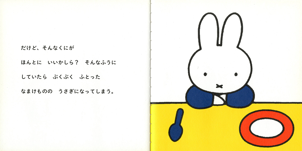 これは難しいです! 子どものころは『うさこちゃんと うみ』の貝殻が並ぶきれいな場面が大好きだったし、面白い名前と、双子への憧れもあってか、『ぴーんちゃんとふぃーんちゃん』も好きでした。大人になった今は、『おかしのくにの うさこちゃん』が好きです。というのも、疲れて「もうこのまま怠けて暮らしたい」と思ってだらだらしかけた時に、「そんなふうに していたら ぶくぶく ふとった なまけものの うさぎになってしまう」っていうところが、ふと口をついて出てきて助けられているので(笑)。