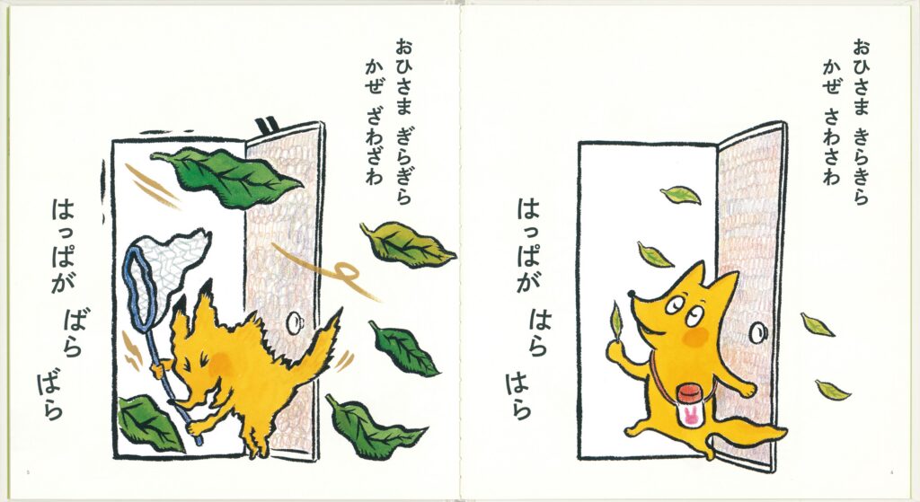 『こん と ごん』では濁点について学び、『おたのしみじどうはんばいき』(アリス館)や『どうぶつなんびき?』(ポプラ社)では数を学習し、『ぺんぎんたいそう』では、絵本の真似をして一緒に楽しく体を動かすことができます。