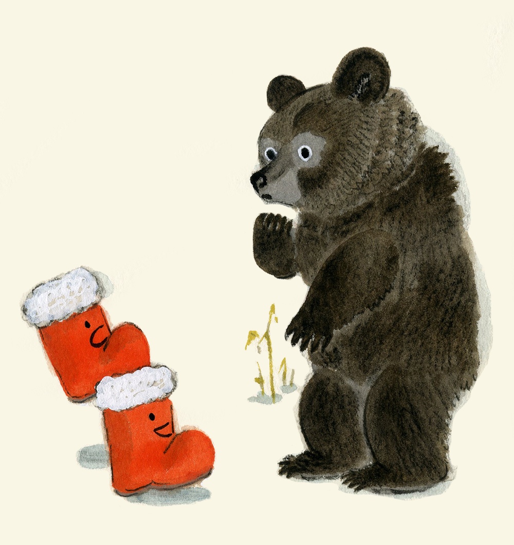 くまくんが、長ぐつにあしを⼊れると