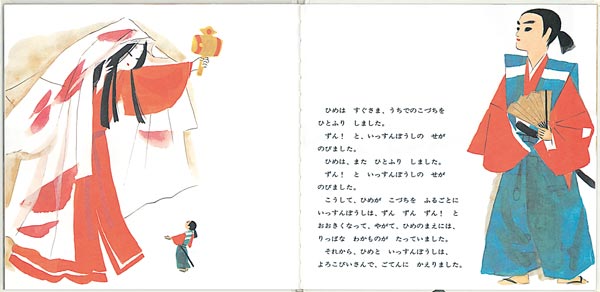 おじいさんとおばあさんのもとに生まれたのは、小さな小さな男の子の赤ん坊。「いっすんぼうし」と名付けられた男の子は、お椀を船にして川へ漕ぎ出し、都の大臣のもとで働くことになりました。すると……
