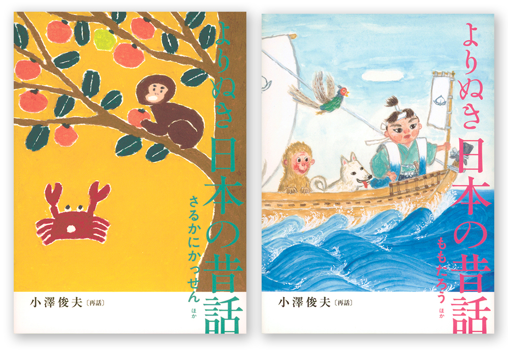 厳選された昔話を12話ずつ収めたお話集。『よりぬき 日本の昔話 ももたろう ほか』と、『よりぬき 日本の昔話 さるかにかっせん ほか』の2冊が刊行されています。昔話本来の語りを忠実に再話した本格派ですが、バラエティに富んだ親しみやすい挿絵で、昔話になじみのない子どもたちも楽しめるシリーズになっています。