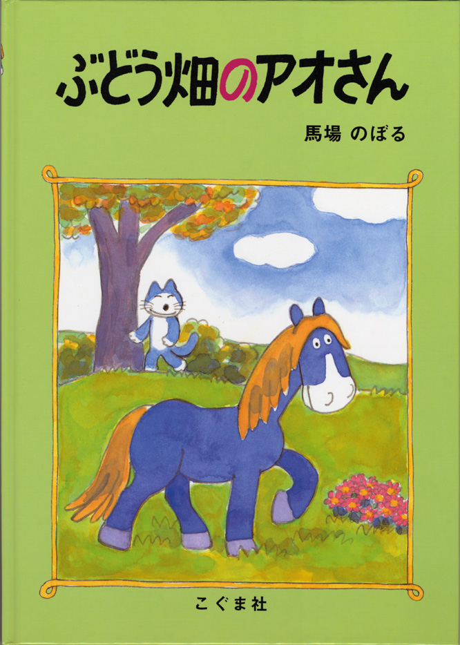 馬のアオさんは、森の中で、いいにおいのするぶどう畑を見つける夢を見ました。目が覚めて、小道を歩いていくと、ほんとうにありました! ネコやキツネたちと食べにいくと、そこには柵を作ってひとり占めするオオカミが。おひとよしのアオさんと動物たちのやりとりは、ほのぼのとした温かさだけでなくおかしみも。同じ作者の『11ぴきのねこ』(こぐま社)によく似たねこも登場します。