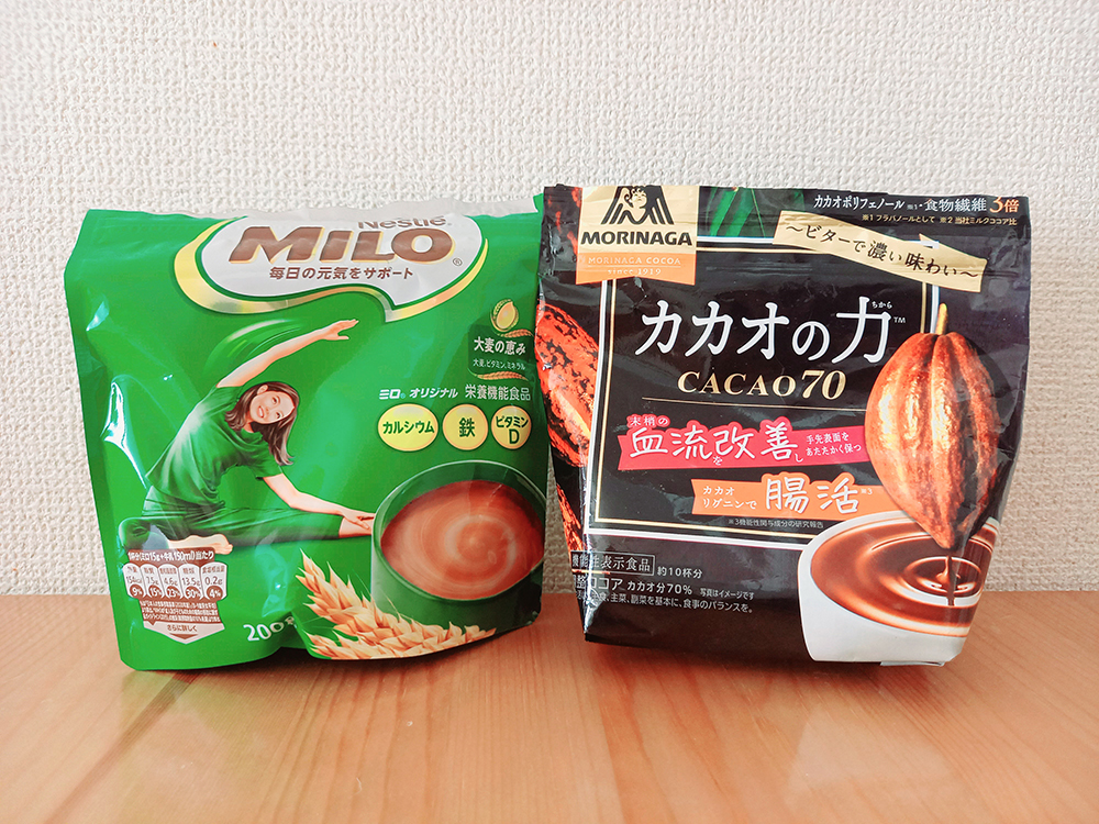 家にいるときは必ず、朝ご飯を食べてから仕事をする前にあつあつの豆乳にミロを入れて、夜は仕事を終え眠る1時間前に、あつあつの低脂肪乳にココアを入れて飲む。