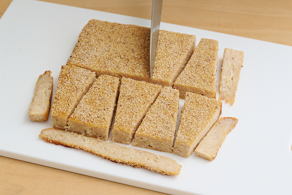 2つ目は、扇形がおめでたい「松風焼き」のレシピ。鶏ひき肉で作る「松風焼き」は、つくねのような味わいなので、子どもたちにも食べやすいひと品です。