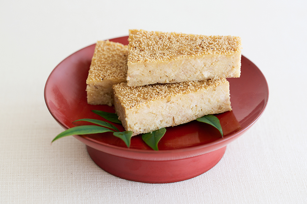 料理の松風は、表にはケシの実やゴマが散らしてありますが、裏には何もついていないので寂しく感じます。